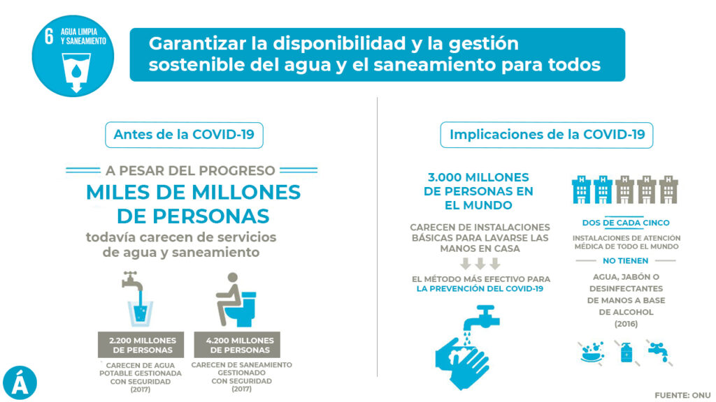 Este objetivo trata de la disponibilidad y la gestión sostenible del agua y el saneamiento para todos, porque el acceso al agua, saneamiento e higiene es un derecho humano.