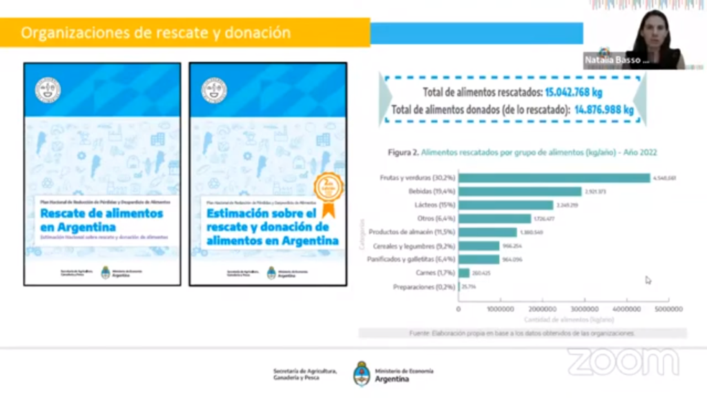 Casi llegando al final, se puede mencionar las organizaciones de rescate y donación, que si bien no está constituido como grupo de trabajo, gracias a 8 organizaciones, se puedo realizar dos informes y la información de los mismos es gracias al accionar de estas organizaciones para aprovechar alimentos que perdieron valor comercial pero que se pueden seguir consumiendo y distribuirlos en organizaciones sociales. La cifra de alimentos tantos rescatados como donados son realmente impactantes: los primeros con una cifra de 15.042.768 kg, de los cuales 14.876.988 kg fueron donados.