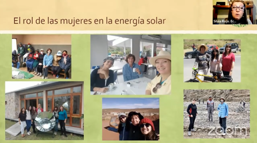 Trabajan muchas mujeres en la Fundación, y también las más beneficiaras de los proyectos son mujeres, porque son las que están a cargo del hogar, y quienes tiene que ir a juntar la leña para cocinar y calefaccionar, incluso teniendo que llevar a sus niños a colaborar con esa tarea. Estos proyectos del aprovechamiento de la energía solar, les permite contar con mas tiempo, evitan llevar los niños a esa actividad y también se evita la desertificación.
